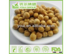 High protein, spicy flavor fried chickpea snacks